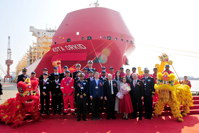 11月4日上午,我集團(tuán)新?lián)P子造船為新加坡太平船務(wù)(PIL)建造的第四艘8200TEU薄膜型LNG雙燃料集裝箱船“KOTAORKID”輪解纜離開船…